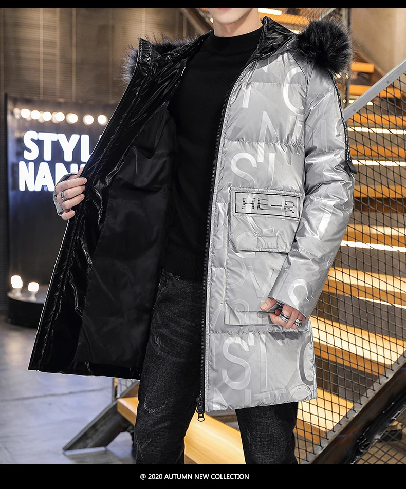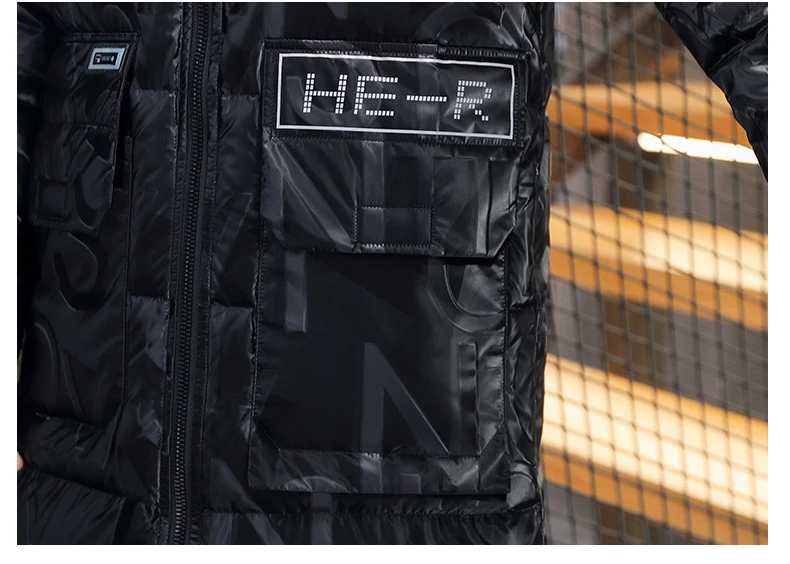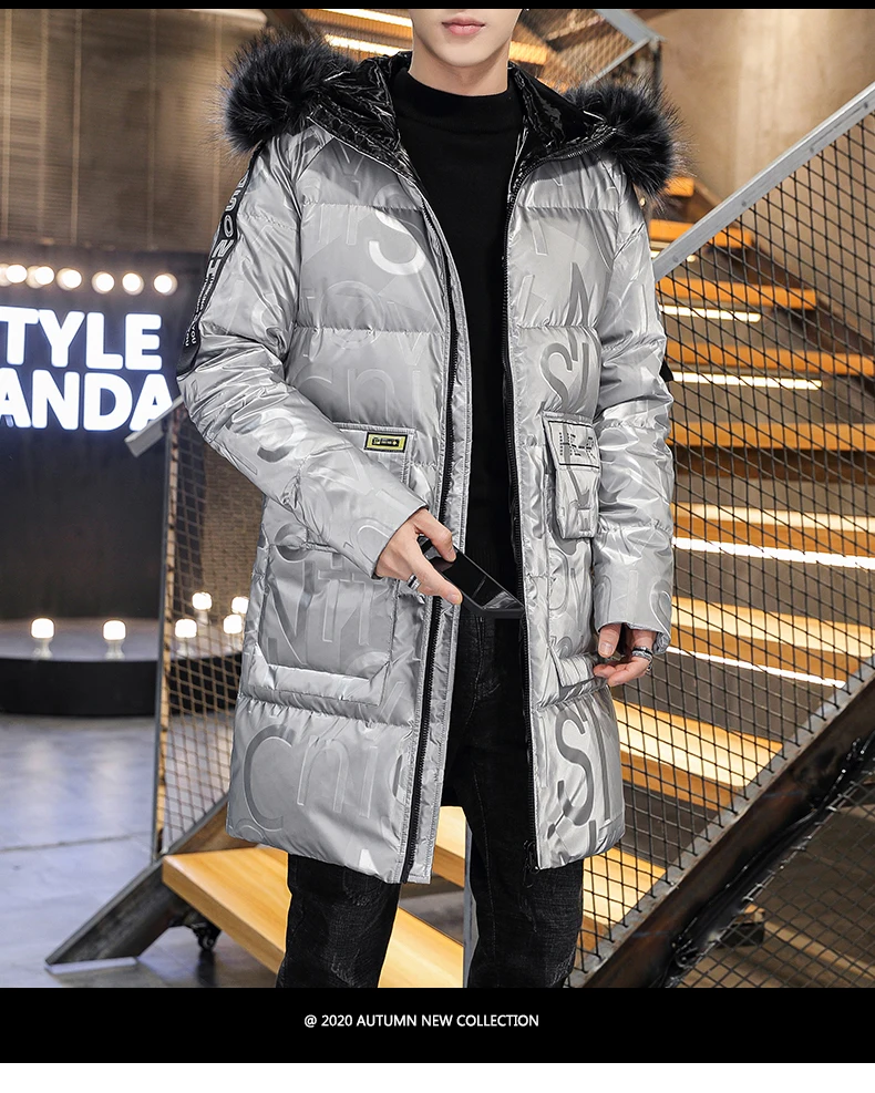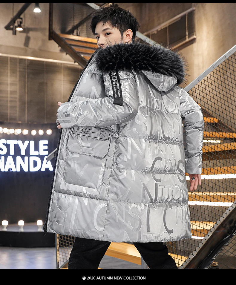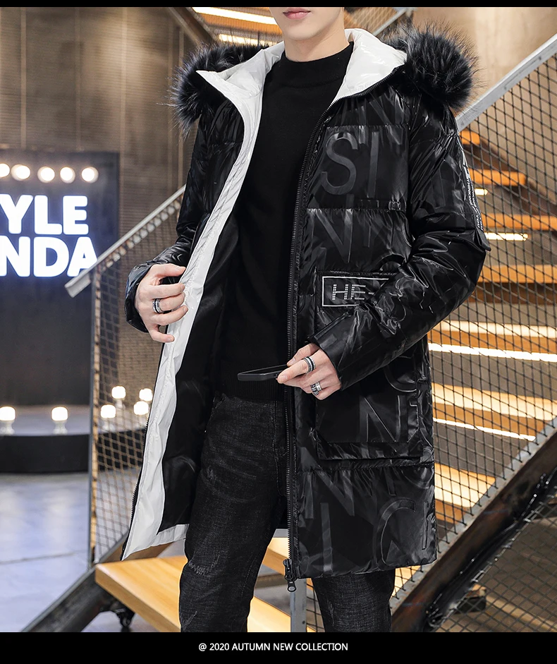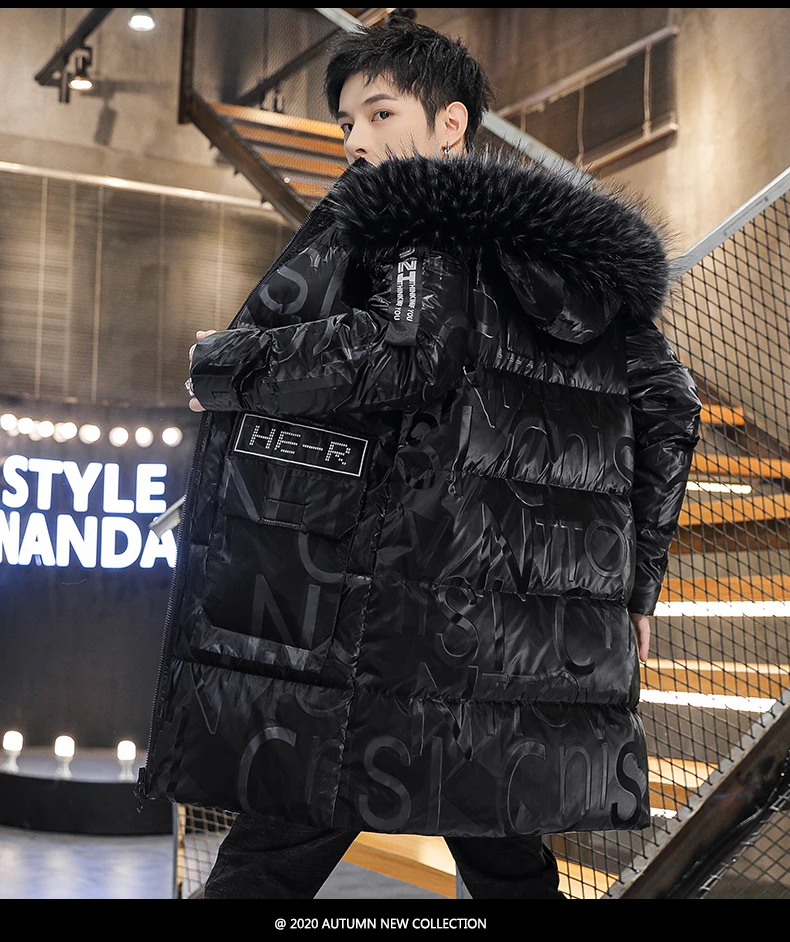 Fashion Hooded Cotton-Padded Jackets Autumn Winter Men's Windproof Thicken Parkas Streetwear Mid-Long Print Warm parkas puffer