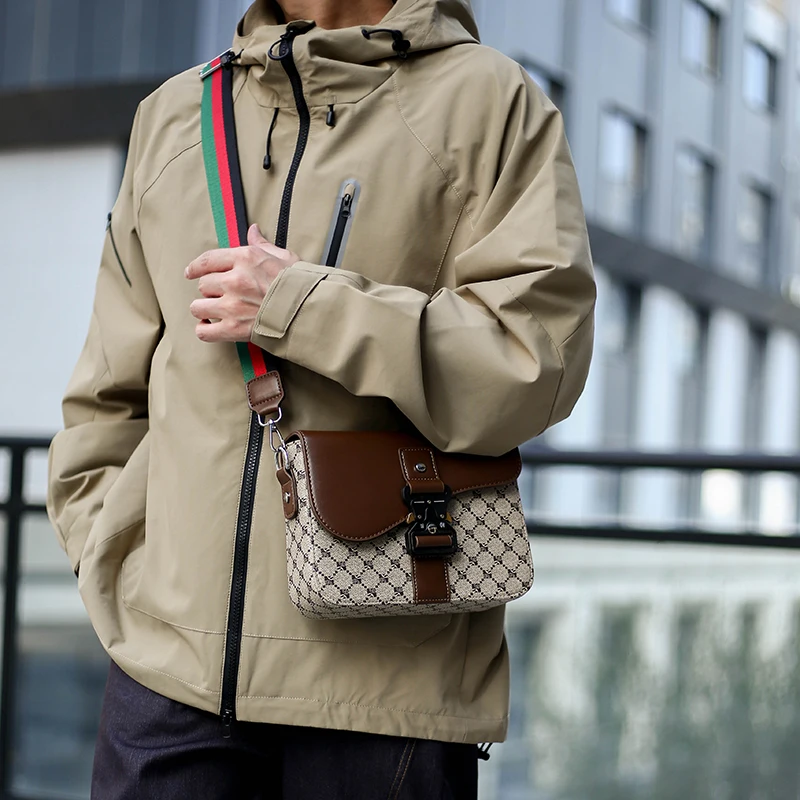 Fashionable Jacquard Pattern Men's Crossbody Bag High-End Casual Shoulder Bag for Commuting Business Waterproof Daily Sling Bag