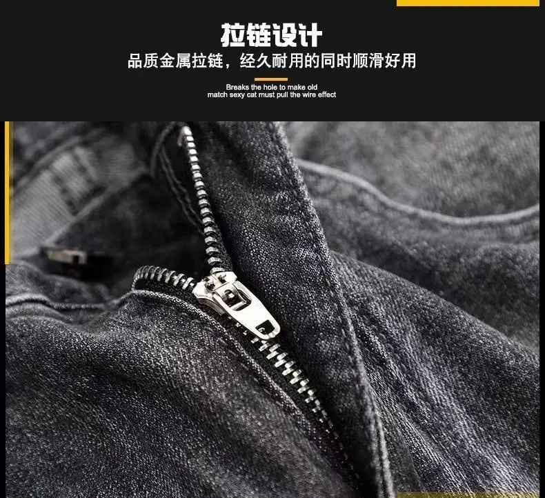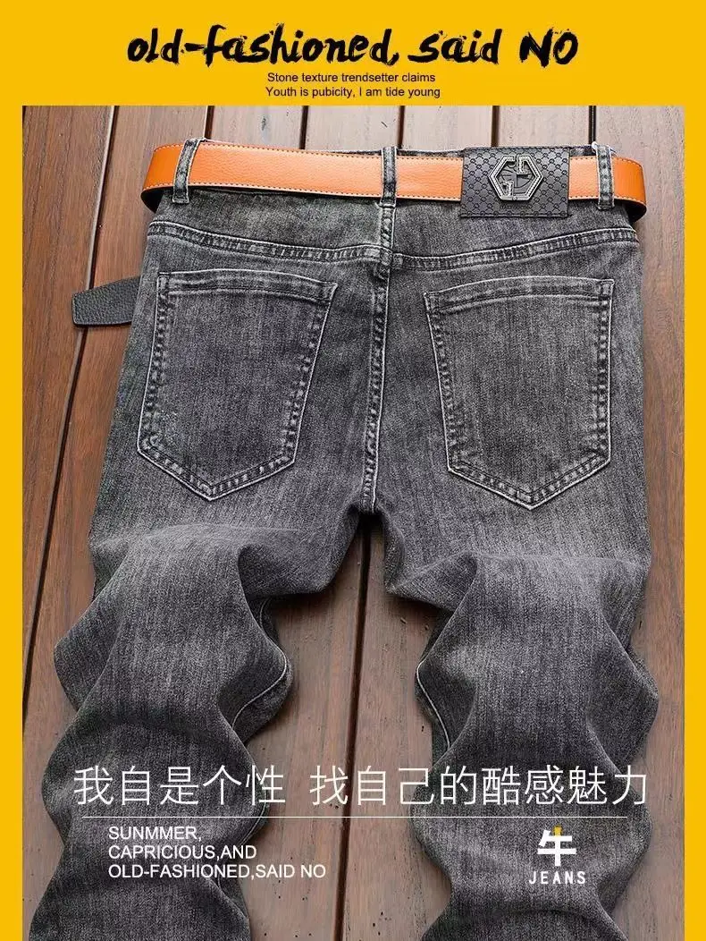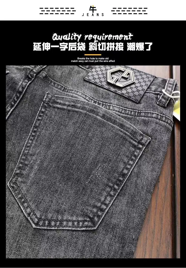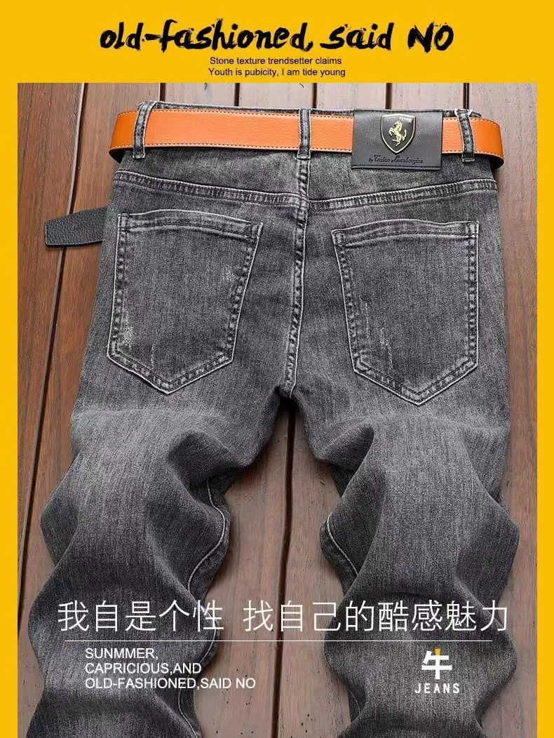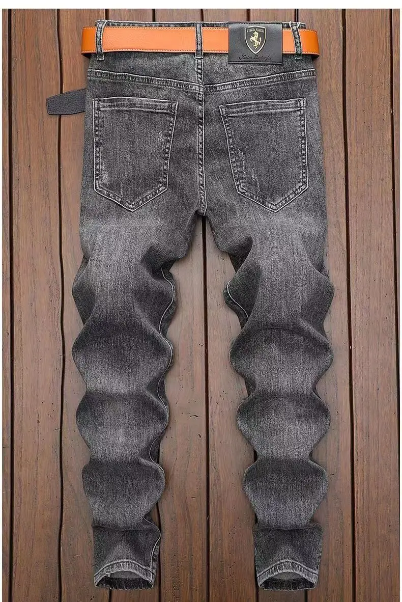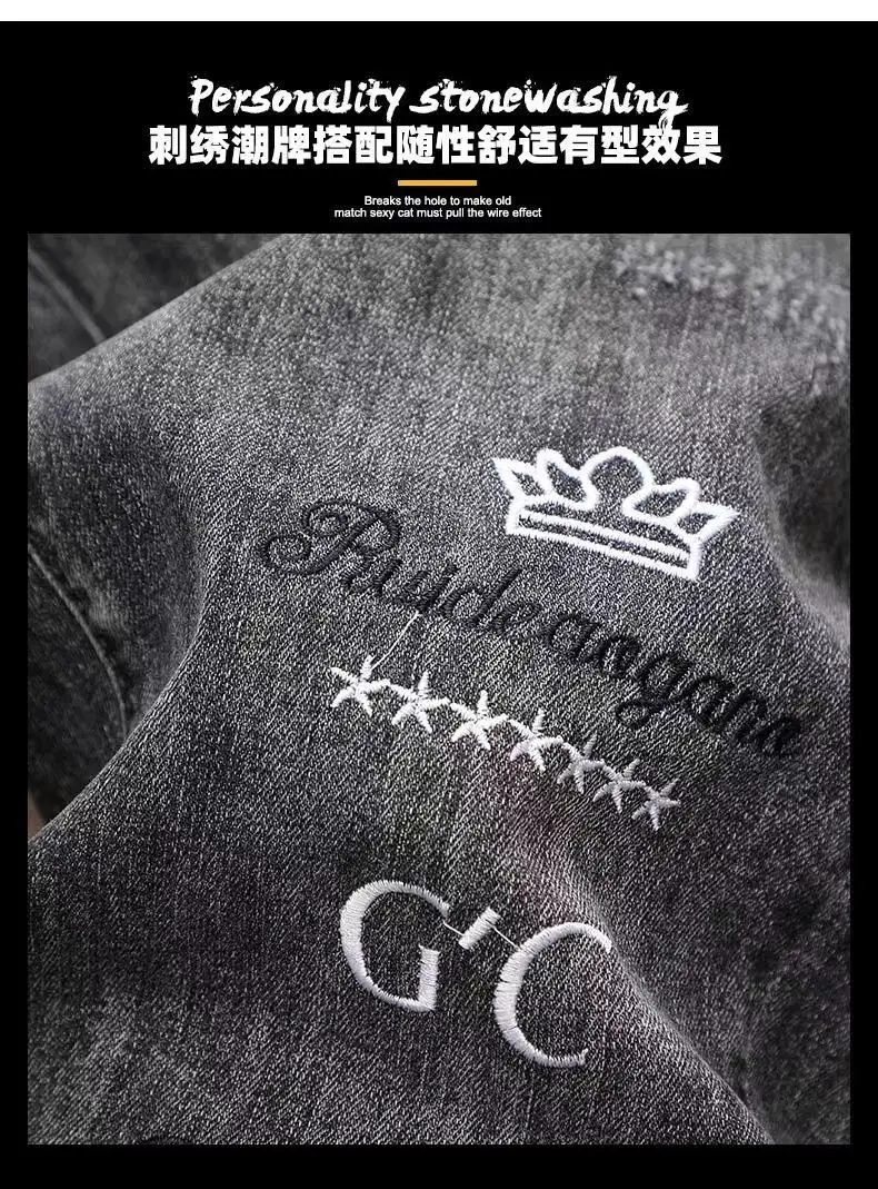 High End Jeans Men's Embroidered Elastic Embroidered Washed Slim Fit Small Leg Pants Casual Long Pants