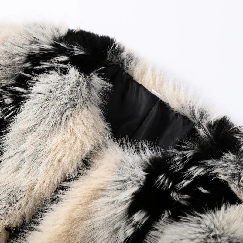 Model Number: Stylish Contrast Faux Fur Women Coat